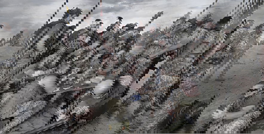 Une photographie qui a tout de la toile de maître ! Prise le 1er septembre 2023 elle est une réinterprétation du célèbre tableau d'Ilya Répine peint en 1891. La toile du peintre est revendiquée par la Russie et l'Ukraine. Son détournement en photographie par Émeric Lhuisset est rapidement devenu viral au sein de la population ukrainienne tant l'image a valeur de symbole.